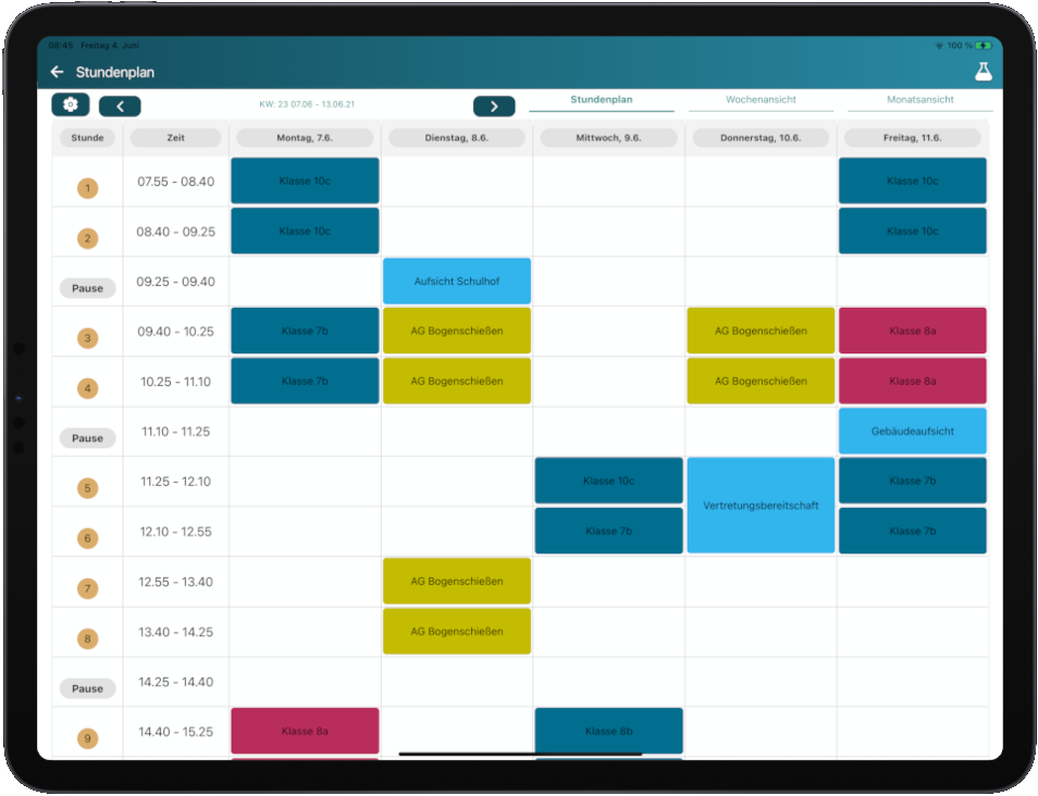 Die App bietet alles, was ich in meinem Lehreralltag benötige, ersetzt die analoge Planung perfekt und ist definitiv eine große Unterstützung, da ich zum einen nicht mehr im Zettelchaos versinke und zum anderen alles an einem Ort habe, was einfach auch enorm viel Zeitersparnis erbringt. Die Bedienung ist intuitiv einfach, sodass man sich sehr schnell zurechtfindet und nach einem ersten kurzen Kennenlernen mit der App direkt starten kann!