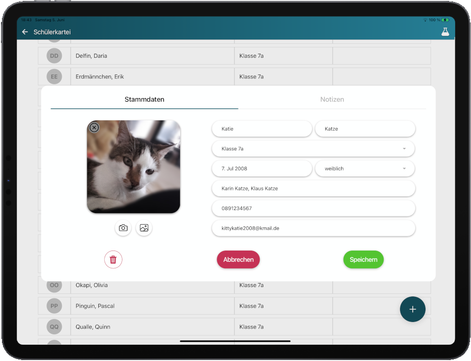 Damit Sie den Überblick behalten, können Sie hier für jeden Ihrer Schüler eine eigene Kartei anlegen und so die wichtigsten Daten jederzeit abrufen!